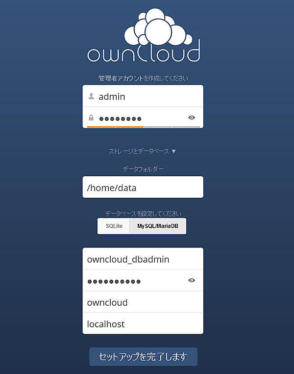 3. ownCloudの初期設定