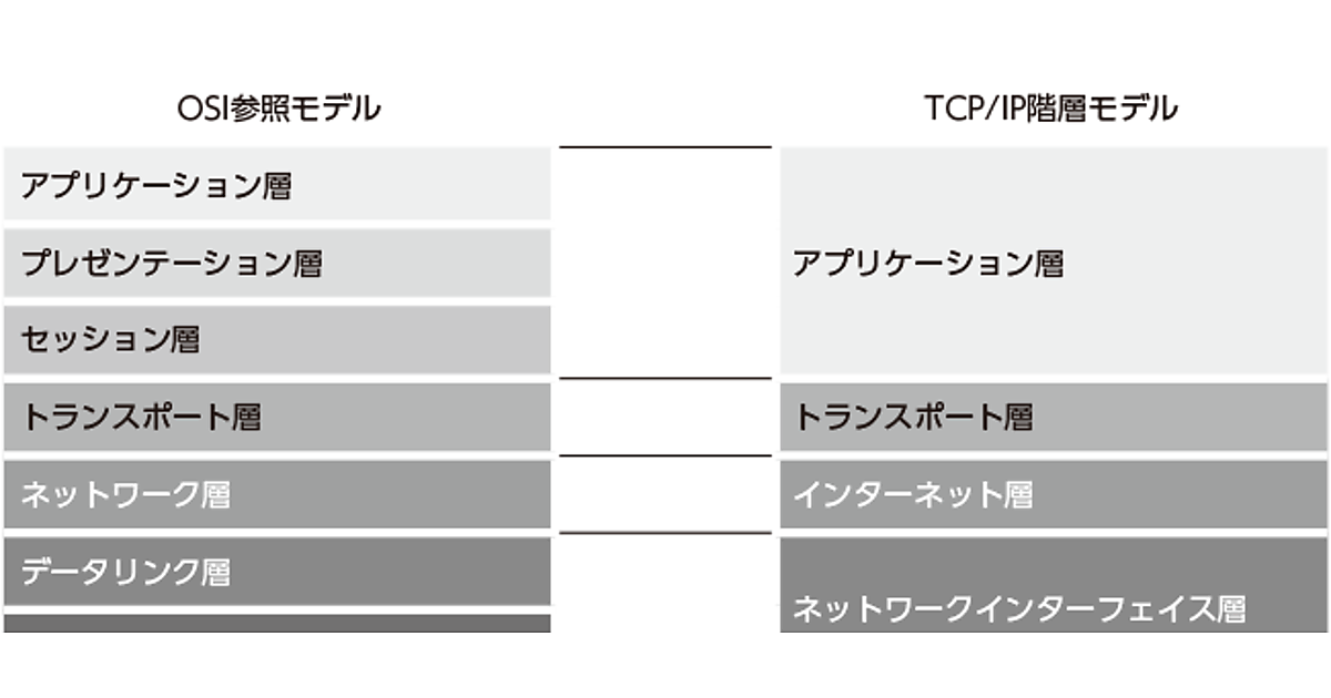 インターネットで使われているTCP/IPプロトコルは、OSIモデルに沿っていません。OSIモデルが構築される以前から、実用的なネットワークとして稼働していたということもありますし、ネットワークの普及期に、多くの機種、OS、ネットワーク方式、アプリケーションが登場したから、OSIモデルのような詳細な階層分けが必要になったとも考えられます。
