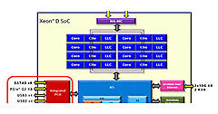 SoCとしてのXeon Dは、既存のPCHと新規設計のSoCコアを組み合わせて作られたプロセッサです。実際にIIO部分にPCI Express 3.0が搭載されているほか、10Gビットのイーサネットインターフェイスなども搭載されているため、Xeon初、あるいはBroadwell系最初のSoCといっても間違いではありません。PCHをMCCで搭載したのは、開発期間を短縮するためだと思われます。Xeon系では、PC用のCPUより厳密な動作が求められます。新規設計では、新たに問題が発生する可能性もあります。だとすると、一部でも既存の実績のあるチップを使うことで、新規に発生する問題を抑えることが可能です。また、既存のチップをそのまま使えば、設計の時間を短縮することも可能だからです。