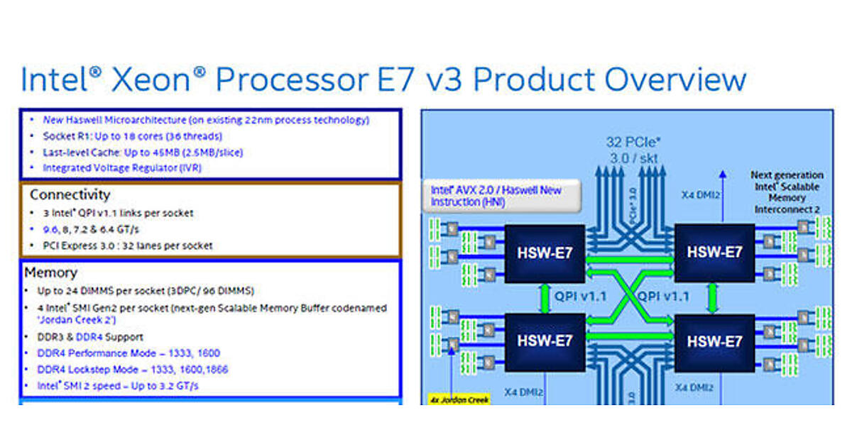 今回は、Xeon E7v3の内部構造、強化機能の詳細、性能評価についてインテルの公開しているベンチマーク結果について、見ていきます。