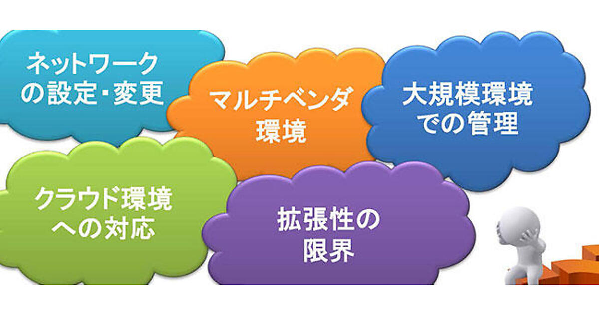 ネットワーク機器は各レイヤに技術が分かれており、各ネットワークベンダーも得意、不得意のレイヤがある。当然のことながら、システムインテグレーターは、実績があるネットワーク機器で各レイヤの構築を行っていくため、マルチベンダー環境が一般的になってきている。しかし、マルチベンダー環境では、機器毎にOSやコマンド体系、設定方法、設定項目の名称などが違うため、それに応じるための技術力をエンジニアは身に付ける必要がある。有償トレーニングの受講、検証機の購入、検証の実施、資格試験の受講などで技術を身に付けるとしても、時間とコストがかかるのはいうまでもない。ネットワーク機器の複雑化とそれに伴うネットワーク技術者への負荷の増大は、「クラウド」に求められている俊敏なプロビジョニングを妨げる要因となっていると言わざるを得ない。