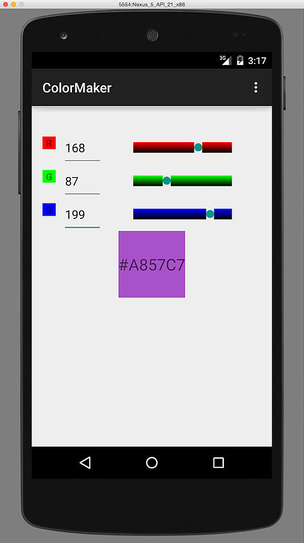 98: edtGreen.setText(String.format("%1$d", progress)); // 値が変わったら、edtGreenのテキストも変える