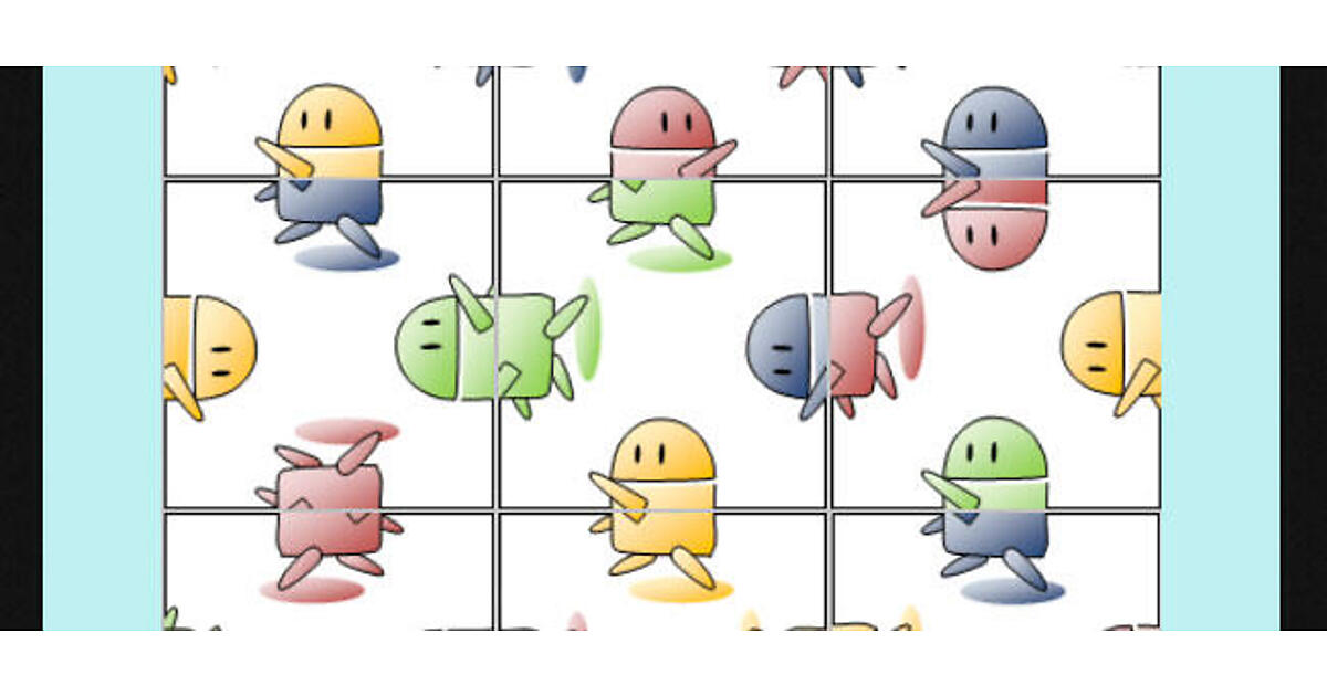 この記事では、書籍『イラストでよくわかるAndroidアプリのつくり方—Android Studio対応版』の解説内容をもとに、本書で説明しきれなかったサンプルアプリを解説しています。このパズルは、ドロイドくんの頭とお尻が画かれたパネルを入れ替えて、全部を揃えるゲームです。頭とお尻には右向き、左向きがあって、色も4色あるので、なかなかうまく合いません。クリックした2枚のパネルの場所が入れ替わります。クリックするパネルは隣り合ったものでなくてもかまいません。操作は単純ですが、意外に難しいパズルです。