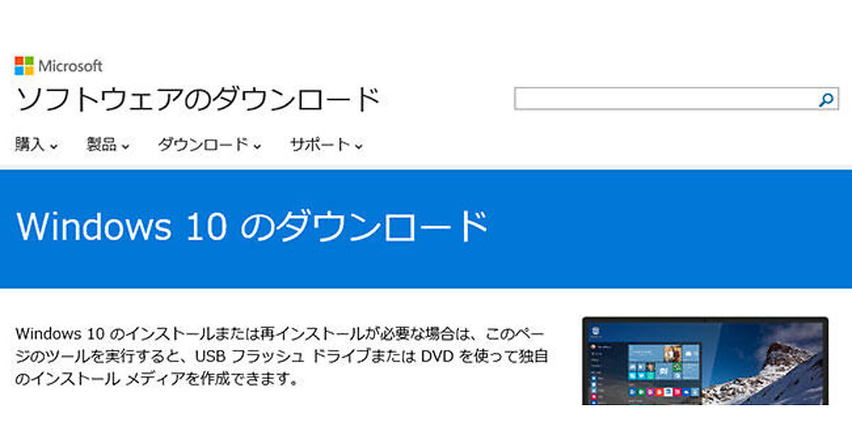 あくまでも予約でしたので、多くの皆さんが、「準備ができたら通知する」ボタンをクリックして、アップグレードの準備ができるのを、首を長くして待たれていたのだと思います。この予約ウィンドウは、相変わらず継続されていますが、製品リリース後、以下に示すWebサイトで「Windows 10ダウンロード」サイトも公開されました。