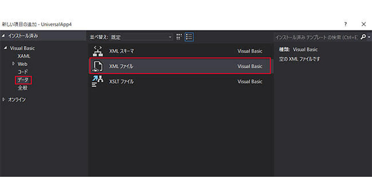 XMLファイルの追加