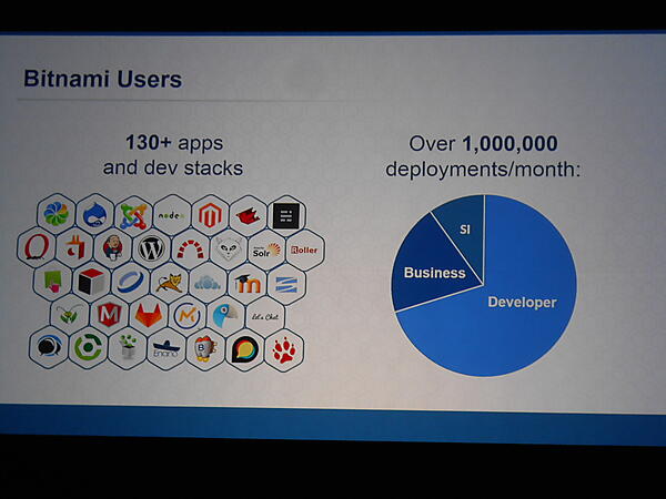 「Banishing the Shadow Cloud」と題して、BitnamiのErica Bresciaが登壇。同社はパブリック/プライベートクラウド上のアプリケーションスタックサービスを提供しており、AWS、Azure、Google Cloud Platform、OpenStack等をサポートしています。