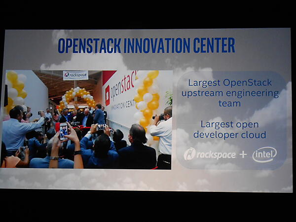 「Accelerating the Open Cloud with OpenStack」と題してIntelのImad Sousouが登壇し、新設した「OpenStack Innovation Center」について説明。社外のOpenStack開発者の雇用、OpenStack開発・評価用の大規模サーバ環境提供が柱となります。また、Mirantisへの出資、その他OpenStack関連企業との連携などの取り組みも紹介しました。